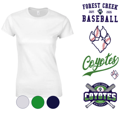 WOMENS FIT- Forest Creek Baseball - *COTTON* Short sleeves ** CHOICE OF DESIGN**